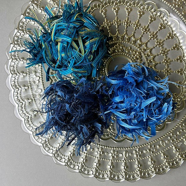生地の生産工程は分業制で、工場によって形状の異なる廃棄糸や生地が生まれます。それらを手作業で加工・セレクトすることで、市販のリボンにはない独特の表情や質感を活かすことができたそうです。