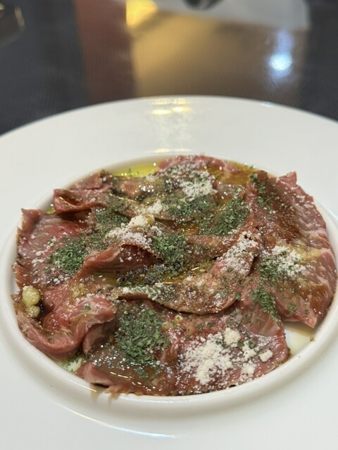 藤井都士規シェフが得意とするのは、すき焼きやしゃぶしゃぶといった和食ベースの肉料理です。特に、A4・A5ランクの熟成黒毛和牛やオリジナルブランド豚「多香味豚(TAKAMI豚)」を使った料理で高い評価を得ています。