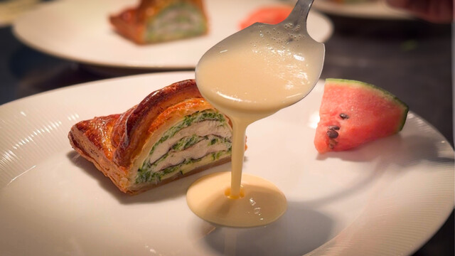 そして大学卒業後、調理師専門学校に1年通い、料理人になる決意を固めました。学生をしながら地元のフランス料理店でアルバイトをしていた際、「オレンジ風味のクレームブリュレ」に衝撃を受け、フランス料理人の道へ進むことを決めたというエピソードが印象的ですね。