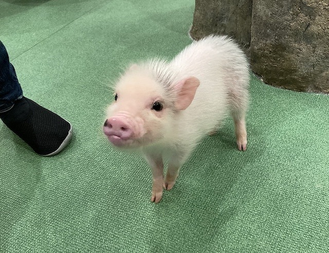 小型の豚とふれあえる施設で、癒しの
